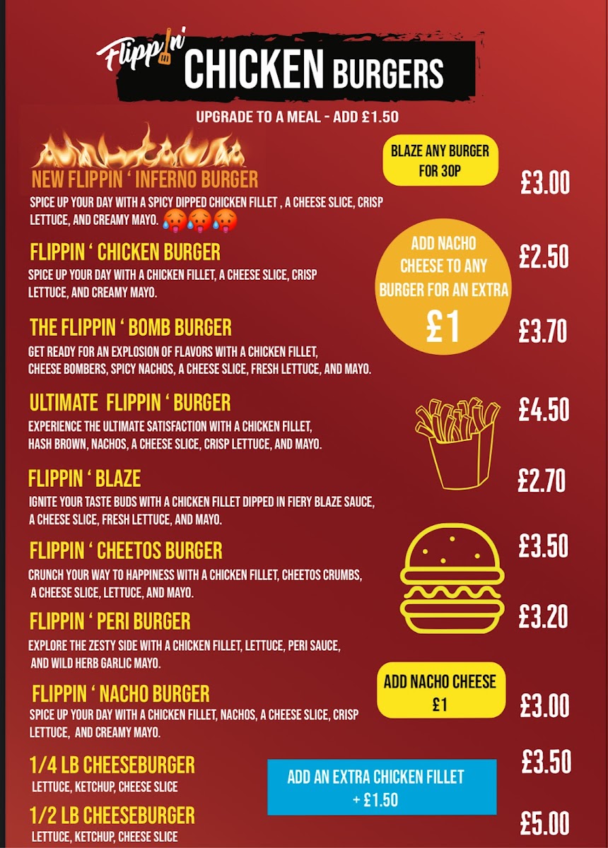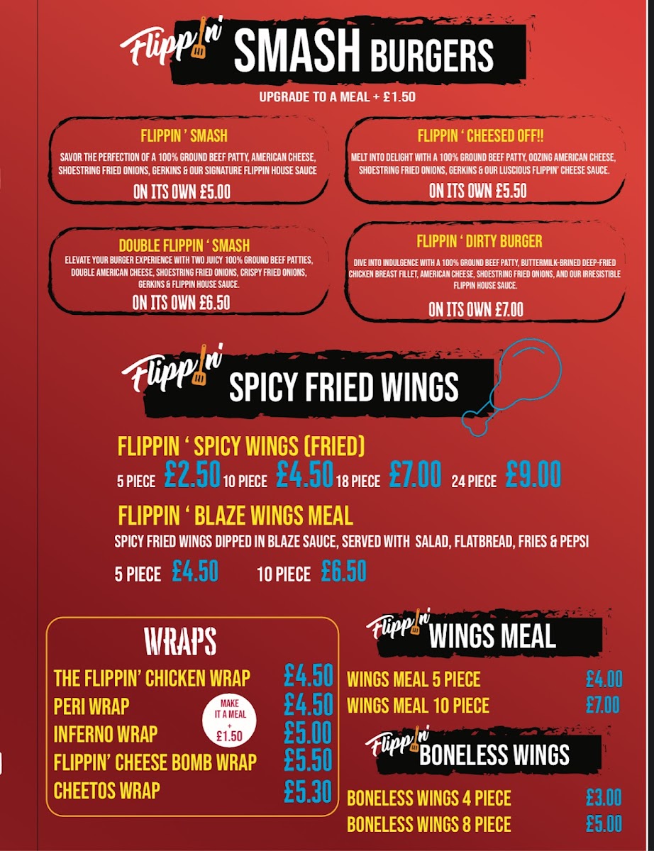 Flippin Burgers & Shakes offers a straightforward menu focused on satisfying, casual fast food favorites. The selection features a variety of burgers and wings alongside comfortingly familiar sides and shakes, creating a relaxed dining experience that suits a quick lunch, casual dinner, or weekend treat.